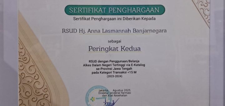 [smartslider3 slider=”3″] PENGUMUMAN HASIL VERIFIKASI ADMINISTRASI REKRUTMEN TENAGA BLUD RSUD Hj. ANNA LASMANAH BANJARNEGARA TAHUN 2025 Berdasarkan hasil verifikasi administrasi terhadap dokumen-dokumen yang dipersyaratkan dalam Rekrutmen Tenaga BLUD di RSUD Hj. Anna Lasmanah...