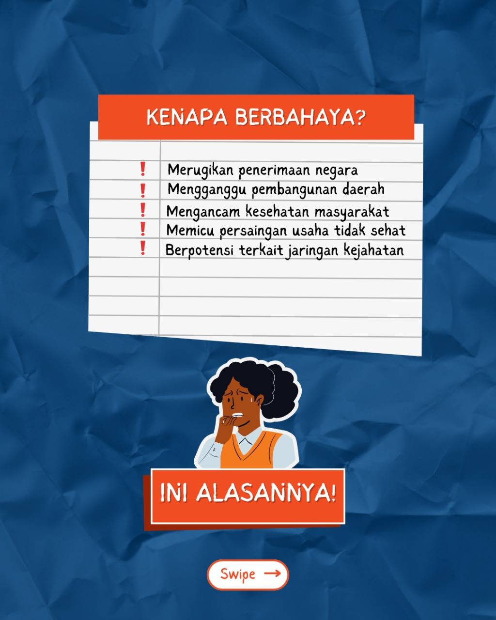 Rokok ilegal itu tidak hanya merugikan negara, tapi juga membahayakan kesehatan dan menghambat pembangunan daerah.