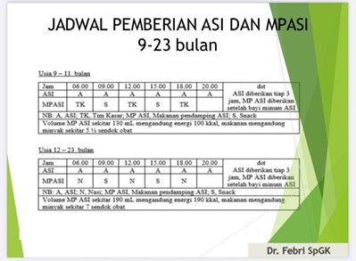 Standar ketentuan atau jadwal pemberian ASI dan MP-ASI